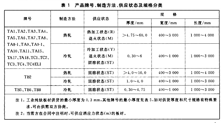 -------純鈦和TC4成品厚度規格修訂為0.3mm~25mm和0.8mm~25rnm, 對部分規格板材的長度允許偏差進行了修訂;