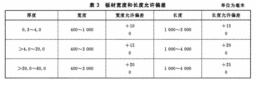3.3.1 板材厚度的允許偏差應符合表2的規定,寬度和長度的允許偏差應符合表3的規定。