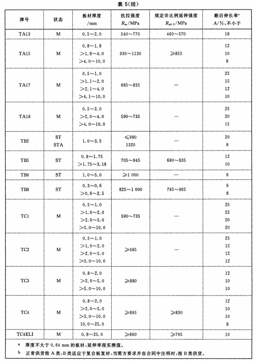 -------增加了TA8、TA8-1、TA9-1、TA11、TA15、TA17、TA18、TB5、TB6、TB8、TC4ELI等11個新的合金牌號及其產品尺寸允許偏差、力學性能、工藝性能等;