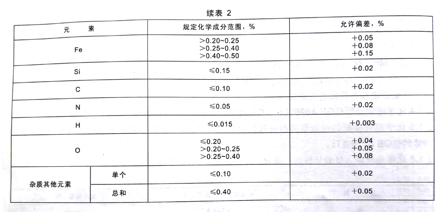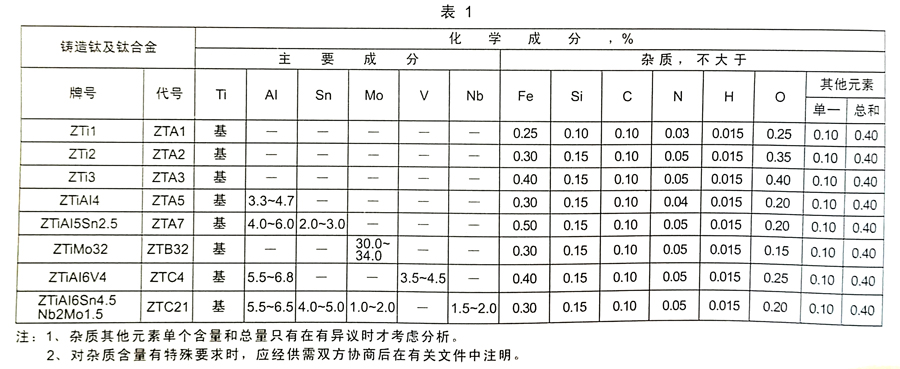 2.1.1 鑄造鈦及鈦合金化學成分應符合表1的規定。