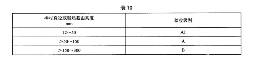 3.6.1 除B類(lèi)用途的TA15鈦合金棒材外,棒材或鍛坯應(yīng)按GB/T 5193的規(guī)定進(jìn)行超聲波檢驗(yàn),其驗(yàn)收級(jí)別應(yīng)符表10的規(guī)定。
