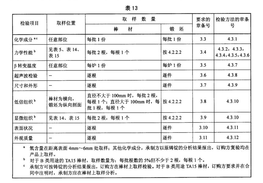b)產(chǎn)品名稱(chēng)、牌號(hào)、狀態(tài)、規(guī)格和數(shù)量,B類(lèi)用途的TA15鈦合金棒材訂貨時(shí),應(yīng)予以注明;