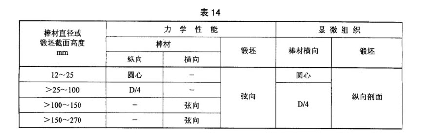 當(dāng)用同一鑄錠采用相近工藝,同時(shí)生產(chǎn)幾種規(guī)格相近的鍛坯時(shí),訂購(gòu)方同意并在合同中注明時(shí),允許用最大規(guī)格鍛坯的性能和組織的檢驗(yàn)結(jié)果代表其他規(guī)格鍛坯的檢驗(yàn)。