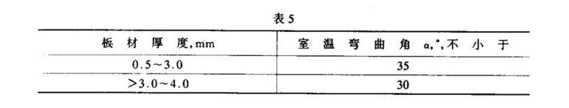 板材的室溫彎曲性能應(yīng)符合表5的規(guī)定。彎曲后,試樣彎曲外表面應(yīng)符合GB 232中8.2條的規(guī)定。