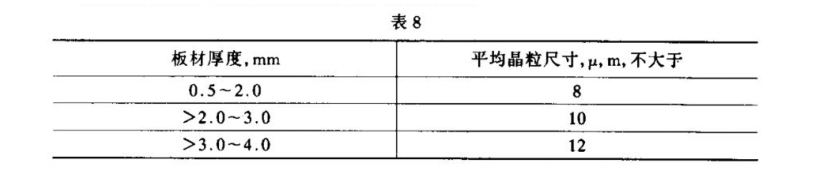 3.7.2 板材的橫向平均晶粒尺寸應(yīng)符合表8的規(guī)定。