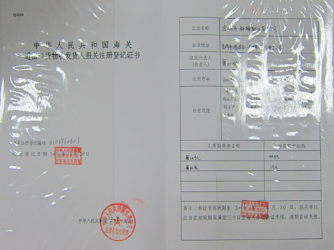 進(jìn)出口貨物收發(fā)貨人報關(guān)注冊登記證書
