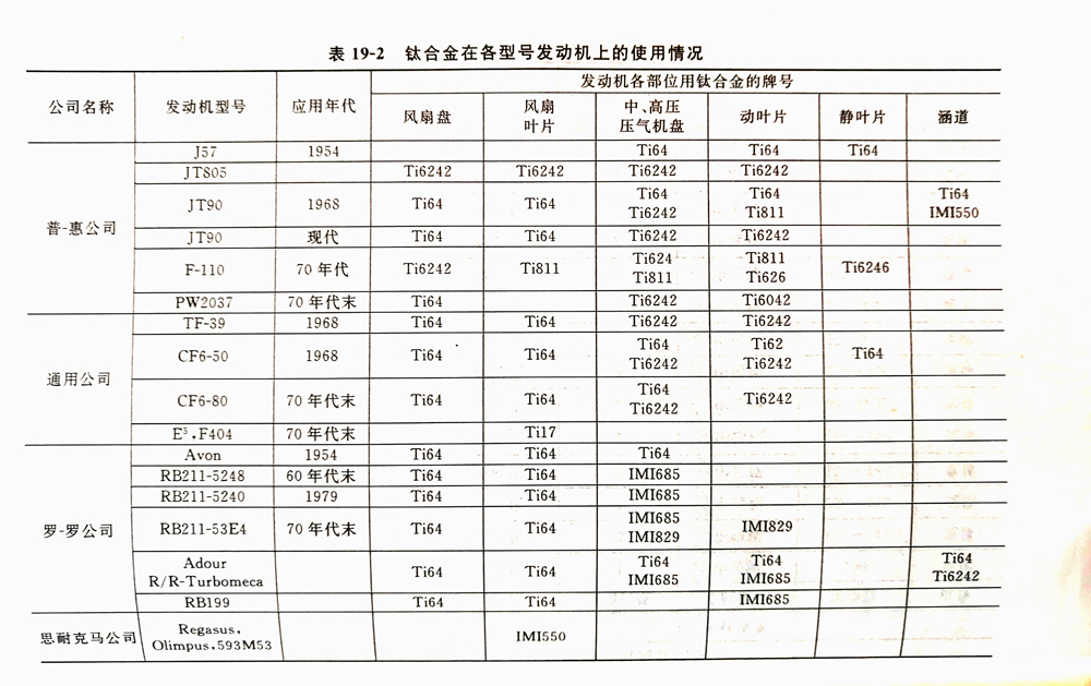 TC4、TA7等鈦合金材料在飛機發動機的應用情況