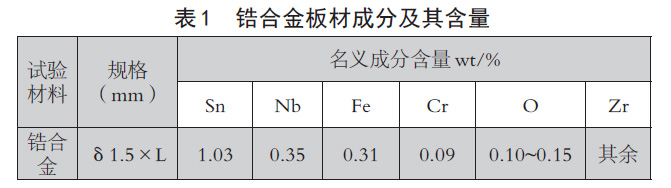 本實驗選用鋯合金板材作為熱處理試驗材料,其規(guī)格為δ1.5×Lmm,其成分如表1 所示。
