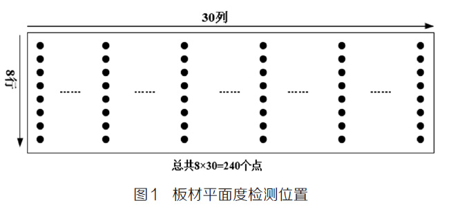 采用同一種熱處理制度進行校平退火,比較不同材質校平工裝校平鋯合金板材的優(yōu)劣性。本實驗選擇2# 工藝580℃ /2.5h 熱處理工藝進行校平退火,并對校平退火后鋯合金板上30×8=240 個點進行平面度檢測,檢測位置如下圖1 所示。