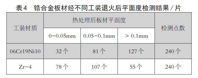 2.1 校平工裝材質對鋯合金板材平面度的影響