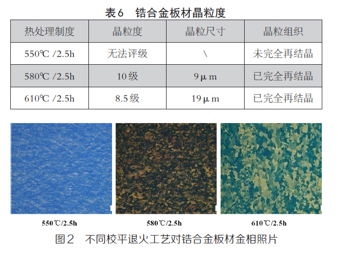 2.3 校平退火工藝對鋯合金板材組織及力學性能的影響