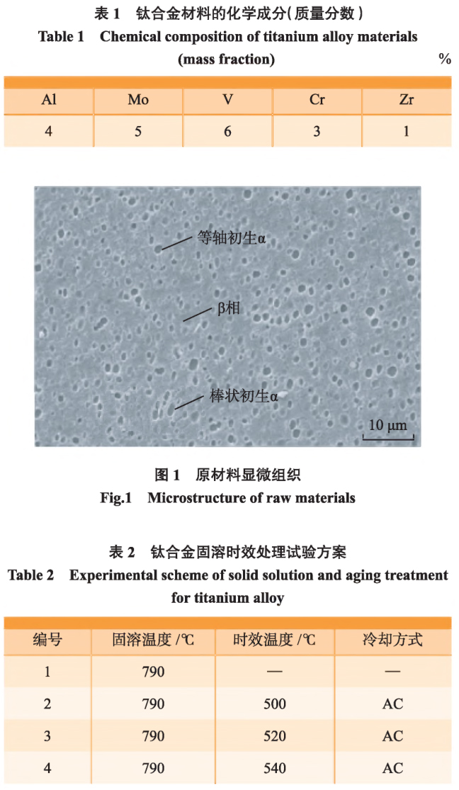 本文針對自主研制的_種新型Ti-Al-Mo-V-Cr-Zr系亞穩β型超高強鈦合金開展固溶時效處理,對其組織和力學性能的影響規律進行研究,以期實現其良好的強塑性匹配,為其工程化應用提供數據支撐。