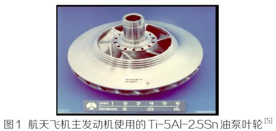 另一類α型鈦合金含有α穩定元素Al和中性合金元素Sn,目的是獲得比CP更高的強度。航空領域最常見的α型鈦合金包括Ti-5Al-2.5SnELI(Extralowinterstitial,超低間歇),由俄羅斯和美國開發,俄羅斯牌號為BT5-1。該合金是在普通鈦合金Ti-5Al-2.5Sn基礎上,通過降低間歇元素含量,顯著提升其在極低溫下的強度和韌性,在20K(-250℃)低溫 條件下仍具有良好的韌性和較低的熱導率[6],主要用于低溫容器、低溫管道以及液體火箭發動機渦輪油泵葉輪,如圖1所示。