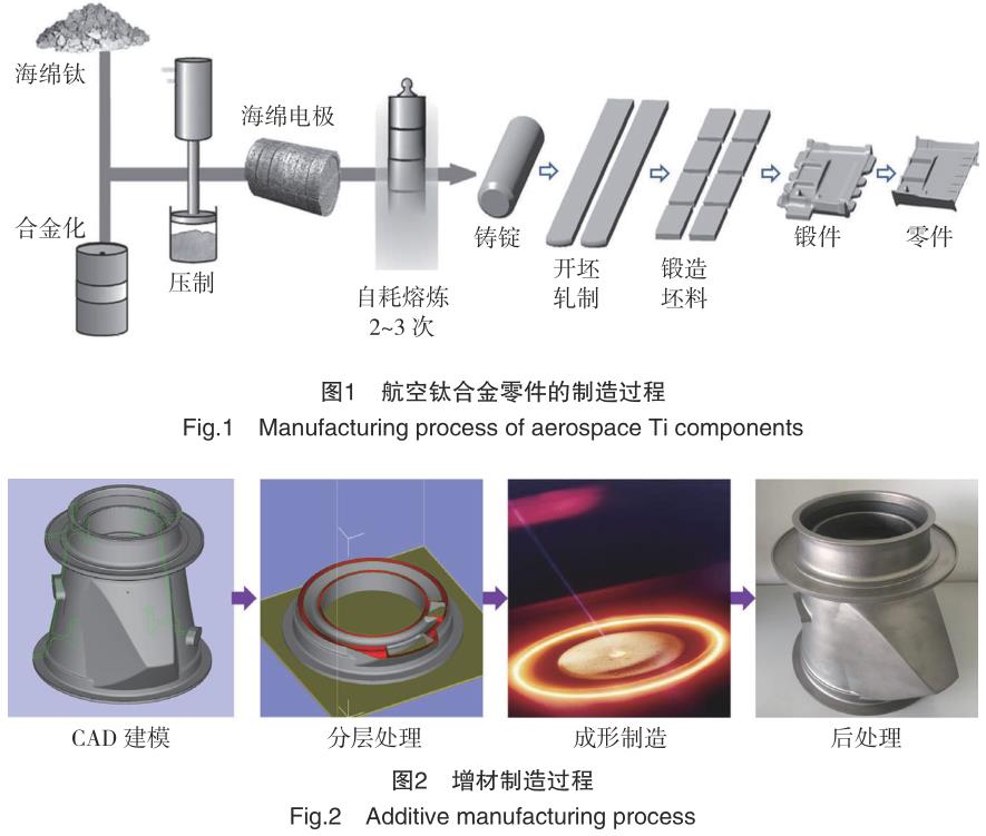鈦合金具有高比強度、比剛度和良好的耐腐蝕性能,滿足了飛機高機動性、高可靠性和長壽命的設計需要,其應用水平已成為衡量飛機選材先進程度的一個重要標志[1-2]。性能 和成本是材料技術發展永恒的兩大驅動力,而輕量化、整體化、結構功能一體化是飛行器結構設計、材料應用和制造技術共同面臨的挑戰。在過去的幾十年里,諸如熱等靜壓、注塑成形、放電等離子燒結等近凈成形技術在鈦合金領域獲得了長足的進步,但氧含量、孔隙率等瓶頸問題依然沒有得到有效解決,因此制約了其在航空鈦合金結構制造中的應用 [3-4]。