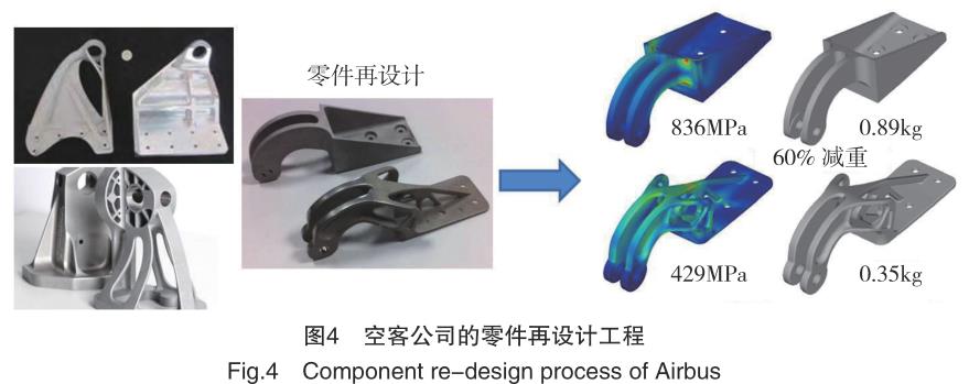 空客通過基于有限元分析的結構優化應用于現有零件的再設計,采用激光選區熔化技術實現了大幅減重,而優化后高度復雜的結構是其他方法難以完成的(圖 4)。另一個優化設計的例子是座椅安全帶的鎖扣,采用優化設計后的 Ti-6Al-4V 替代不銹鋼可實現 55% 的減重,對于具有 853 個座椅的空客 A380 來說,服役期間可節省 300 萬美元的燃油費 用,而這些采用 SLM 制造的鎖扣成本僅 25 萬美元。第一個進入批產的SLM 零件是 GE LEAP 發動機中的高溫合金燃油噴嘴[15],原有的 20 個組件現在變為 1 個,實現了 25% 的減重,并且壽命是原有零件的 5 倍。到2020 年將有 10 萬件采用 SLM 技術生產的燃油噴嘴裝載在 LEAP 發動機里,為波音 737MAX 和空客 A320NEO 提供動力。