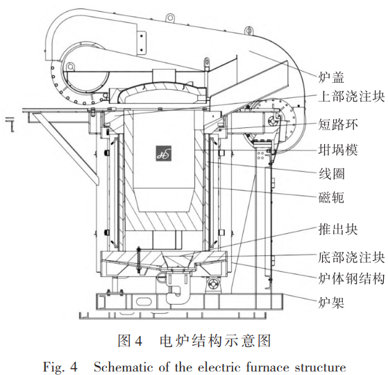 電爐是真空熔煉的核心設備之一(圖4),它直接影響熔煉過程中金屬的加熱和冷卻。合理設計電爐結構,確保金屬樣品受熱均勻是非常關鍵的。先進的電爐控制系統可通過精準控制溫度,確保金屬在熔化和凝固過程中的溫度穩定性[15]。冷卻速率直接影響晶體的生長速度和晶格結構。通過調整冷卻速率,可以控制金屬晶體的尺寸和形狀,從而改善金屬材料的力學性能和結構均勻性[16]。高度可控的冷卻速率是真空熔煉技術的一項關鍵工藝參數。