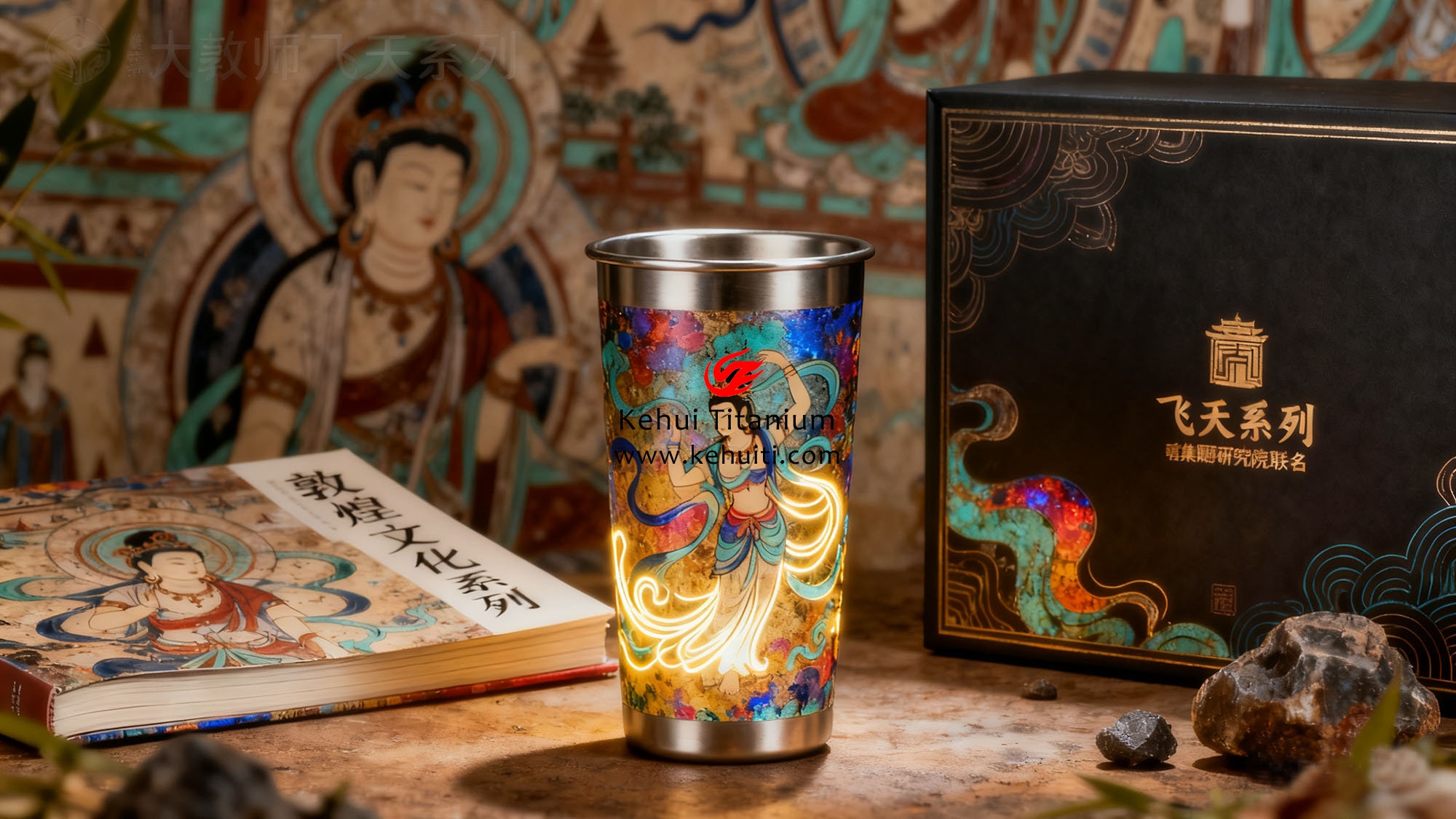 京東聯合敦煌研究院推出的 “飛天系列” 鈦杯,將莫高窟壁畫元素與鈦的金屬質感結合,打造出兼具功能性與藝術性的高端禮品。該產品通過抖音 “國潮” 話題推廣,單月銷量超 2 萬只,客單價達 899 元,成為鈦民品高端化標桿。