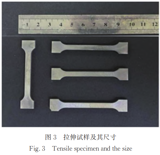實驗采用SHIMADZU拉伸試驗機。由TC4鈦合金板上切割的拉伸試樣及其尺寸如圖3所示。首先對拉伸試樣進行不同冷卻方式的固溶處理,再使用400#砂紙將未處理的初始試樣和固溶處理好的試樣進行研磨,然后在室溫條件下進行拉伸試驗,應變速率為0.001s-1。將固溶處理后的拉伸試樣進行500℃(3h)、550℃(3h)、600℃(3h)的時效處理,空冷后對其表面進行研磨。在室溫下進行三組拉伸試驗,應變速率為0.001s-1