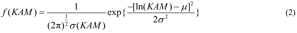 式中,σ和μ分別是對數正態分布的形態參數和尺度參數。 KAM分布的均值(m KAM )和方差(v KAM )定義為: