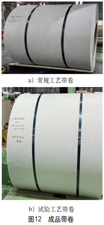 分別對常規工藝和試驗工藝后的成品帶材取樣,檢測其各項性能,并參照ASTM B265:2025中技術標準和客戶要求進行評定。檢測數據見表3。