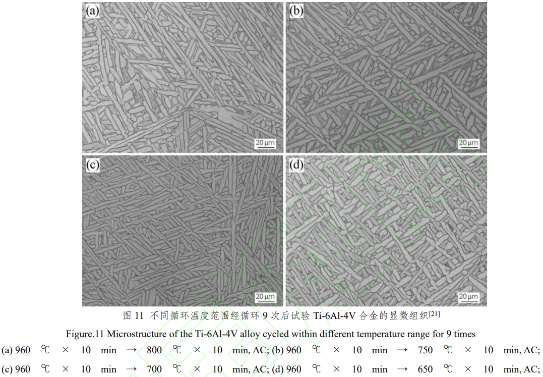 3.1循環熱處理工藝對 Ti-6Al-4V鈦合金組織與性能的影響